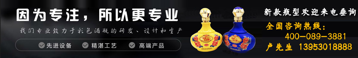我公司始終是堅持“專(zhuān)注專(zhuān)業(yè),締造精品”的經(jīng)營(yíng)3理念,專(zhuān)注于彩色酒瓶的設計、研發(fā)和生產(chǎn)。我公司投資600多萬(wàn)元引進(jìn)國內的噴涂烤花生產(chǎn)線(xiàn)多條, 是集蒙砂、堆花、描金、噴釉等綜合加工為一體的大型企業(yè)。我們?yōu)榭蛻?hù)提供一條龍服務(wù)。